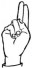 На ћирилици написано КОСТАДИН СИМЕУНОВИЋ састоји се из 18 слова [?]. Исписано ћириличном једноручном азбуком за глувонеме: